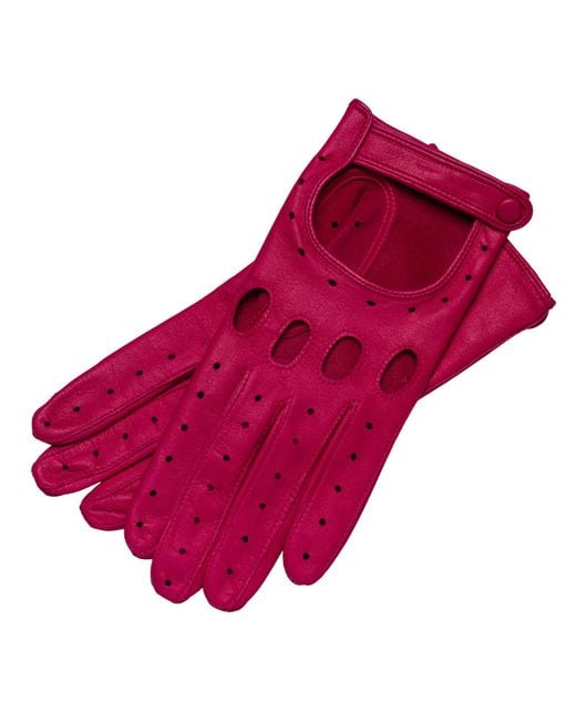 Spice up your favorite looks with a stylish pair of this pink nappa leather driving gloves. The buttery soft Italian nappa is left unlined for breathability making the gloves suitable to wear in spring and fall. Cut and sewn by leather artisans in Pecs, Hungary. For more than 160 years the city of Pécs has maintained its status as the European capital of glove making. Traditional techniques were passed on from one generation to the next, even in the most turbulent of times. In its recently renovated historical atelier, 1861 Glove Manufactory cultivates its know-how and innovation in the art of leather, made in Hungary. The leather used to make these gloves is one of the finest examples of the Italian lamb nappa variety. Avoid exposing them to rain. If they become wet, let them dry on a flat surface at room temperature. Avoid sources of heat. If they become dirty, gently rub with a soft cloth together with some talcum powder as soon as possible. Colour: red