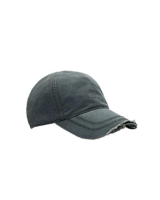 A-Cold-Wall Distressed Cap is a five-panel cotton cap featuring a faded twill and a deliberately distressed peak for a worn-in look. Its adjustable back strap and reinforced stitching make it a practical everyday accessory. Key attributes: Onyx | Black | Cotton | Adjustable back strap | Twin-needle stitching | Five-panel construction | Distressed finished peak | Raw edge brim | Acw* bracket logo embroidery | Faded cotton twill effect | Bound internal seams | Dimensions & fit: One size (adjustable) | Composition & care: 100% cotton Colour: grey