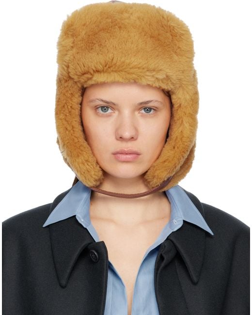 Grained lambskin hat. · Shearling trim throughout · Adjustable press-stud chin strap · Logo plaque at side · Shearling interior Supplier color: Rust brown Colour: blue
