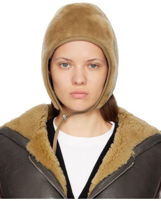 Shearling hat. · Cinch chin strap · Satin lining Supplier color: Ginger brown Colour: multicolour