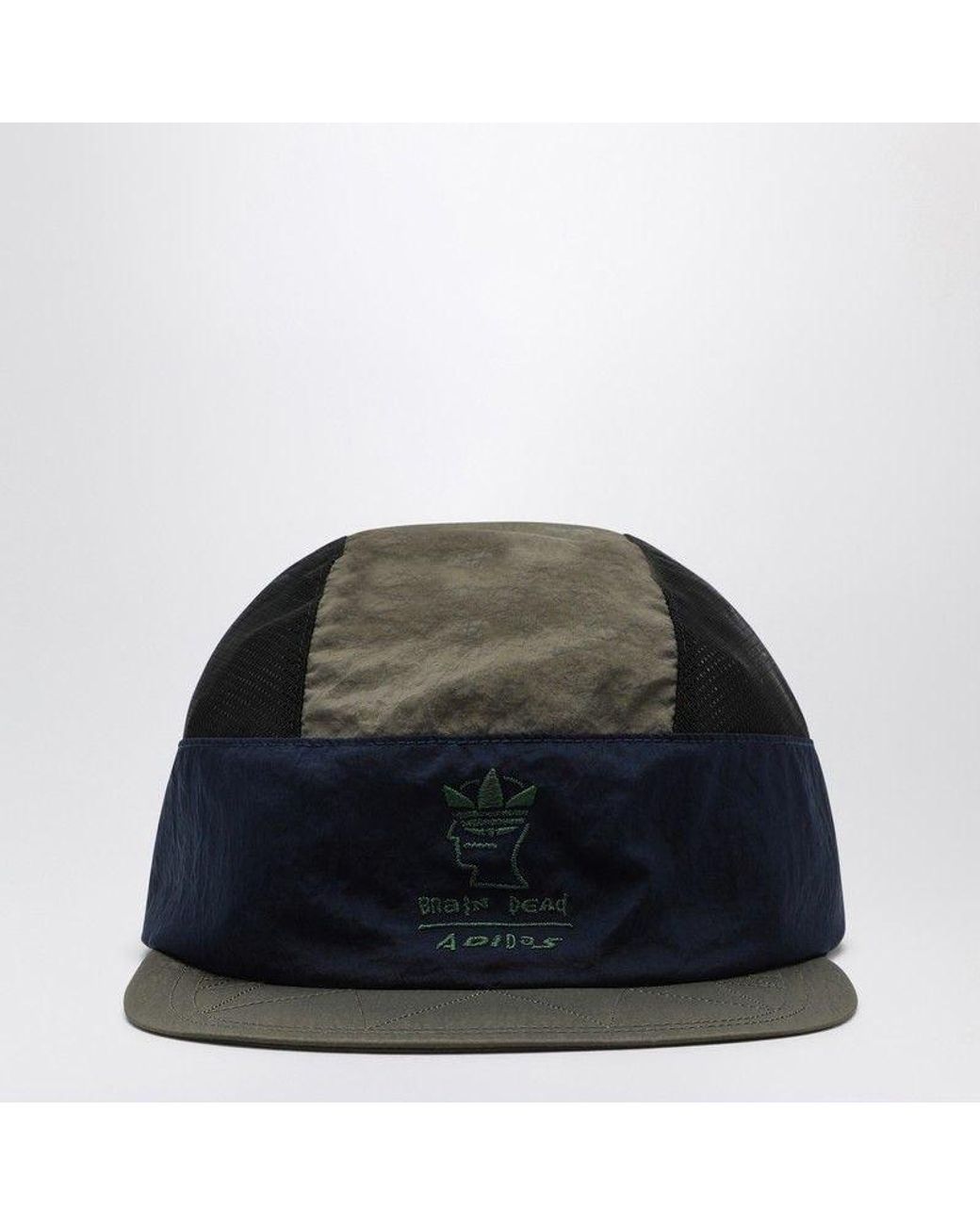 Cap with visor by adidas originals made in collaboration with brain dead in recycled black, green, and blue nylon, featuring an embroidered logo on the front and an adjustable size at the back with a drawstring.SpecificationValueSeasonSS25Composition100% RECYCLED POLYAMIDEColorBLACKColor CodeBLKMade InCHINAISOCNDepartmentMenSectionACCESSORIESSubsectionCAPS & HATSSize InformationONE SIZESize CodeOS Colour: blue