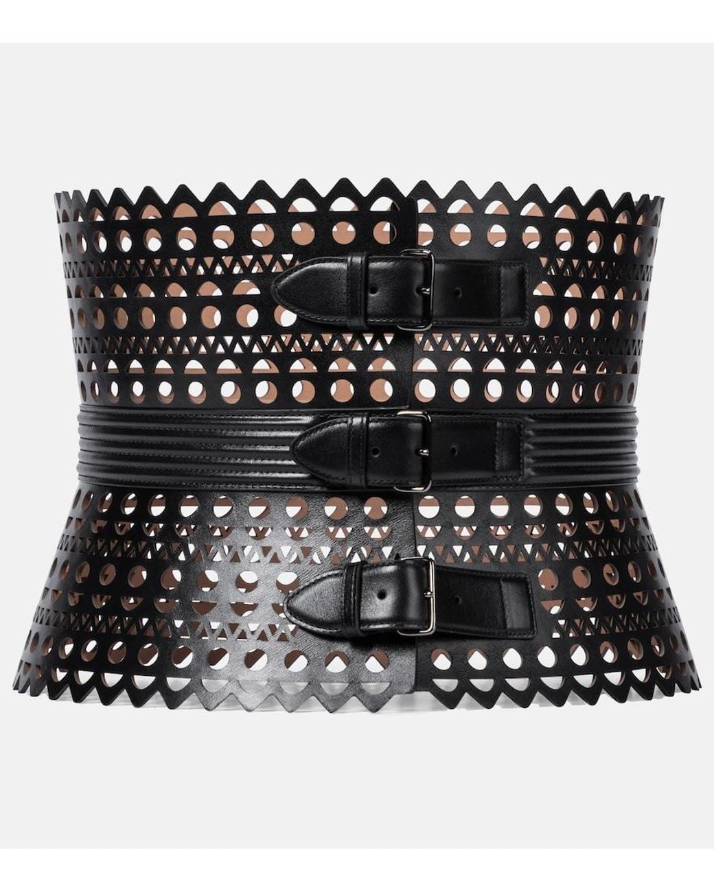 Laser-cut Leather Corset Belt - Black