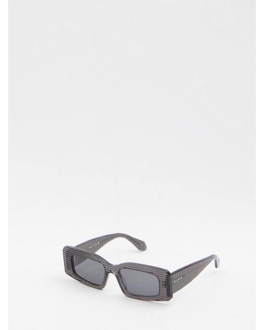 Grey rectangular sunglasses. Thick striped acetate frame, Alaïa signature on the temples, rectangular lenses.Lens width: 5.3 cmBridge: 1.8 cmTemple length: 14 cmSize nationality: UNI Gender: WomenMaterial: 100% ACETATEColor: GREYMade in: ItalyProduct ID: 5829976 AA0078S 800*Import tax/duty will be calculated at checkout (If applicable)WARNING CALIFORNIA PROPOSITION 65This product can expose you to chemicals including Nickel (Metallic), which is known to the State of California to cause cancer.For more information go to https://p65warnings.ca.govCalifornia Health & Safety Code Section 25249.6*Shipping eyewear products to US onlyFor US customers, eyewear products are categorized as Class 1 medical devices by the 21 Code of Federal Regulations (CFR) - Food and Drug Administration (FDA). Baltini ships eyewear orders on a Delivery Duties Paid (DDP) basis. This means that all applicable duties are included in the final price calculated at the checkout and there are no additional costs due upon delivery. Colour: white