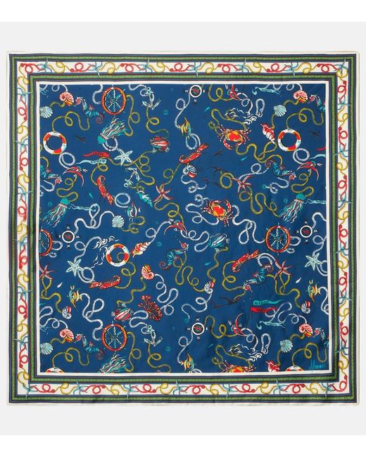Women's Blue Printed Silk Twill Scarf