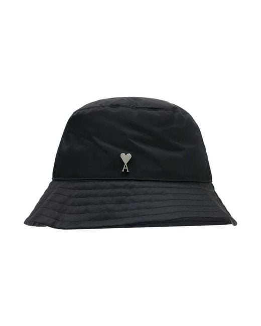 AMI Paris De Coeur Stud Bucket Hat blends the brand's signature heart motif with a classic bucket silhouette. The design features a metal Ami de Coeur stud and a comfortable cotton lining for everyday wear. Key attributes: Black | Nylon | Cotton lining | Metal Ami de Coeur stud | Bucket hat silhouette | Ami de Coeur stud detail | Composition & care: Nylon | Cotton (lining) | Spot clean. Colour: black