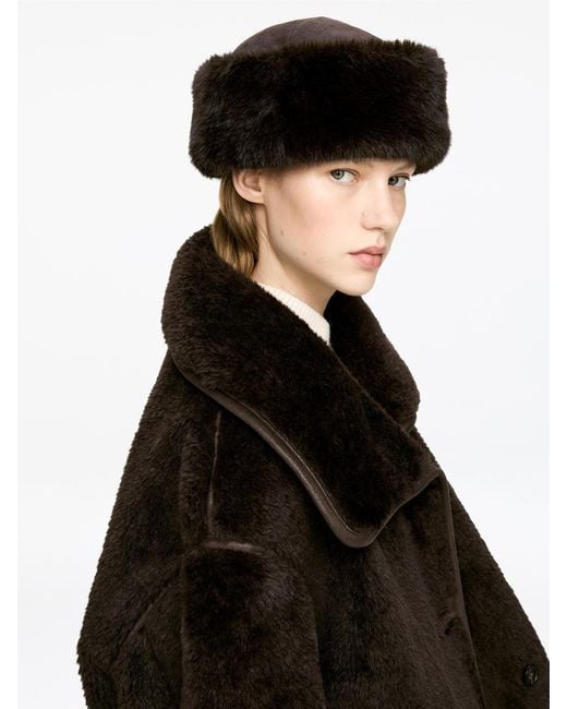 Unfolded hat in suede with a faux-fur brim. Fully lined. Colour: black