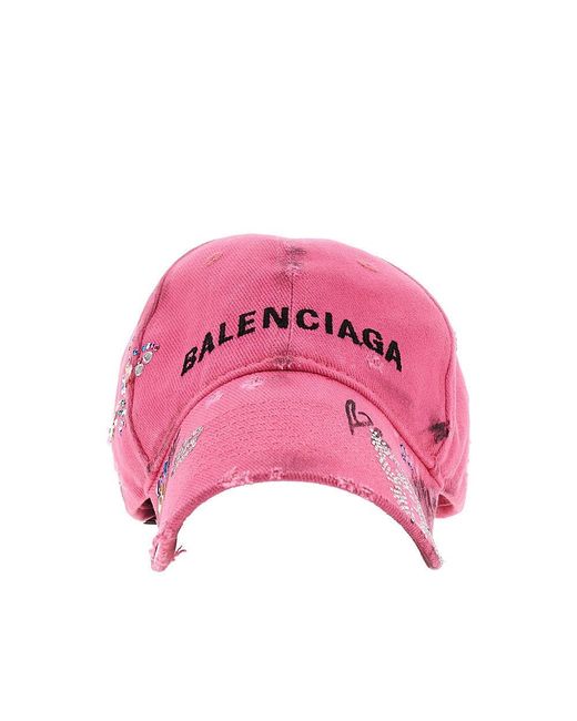 Women's Pink Baseball Cap With Rhinestones And Used Effect