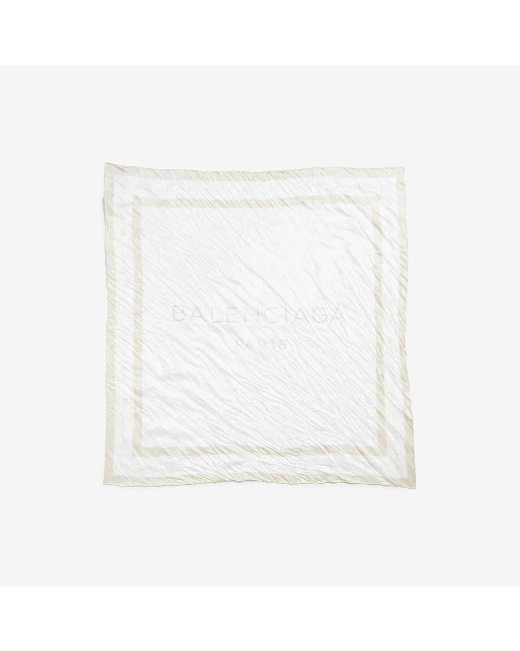 Fragrance scarf in beige silk twill. Silk twill• classic squared scarf• balenciaga logo printed• made in italy• the scarf will be delivered rolled up and crumpled. Main material: 100% silk.