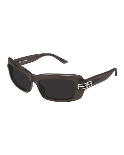 Balenciaga Acetate Sunglasses with a squared rectangular silhouette and grey lenses. Designed for everyday wear, they combine bold styling with reliable UV protection. Key attributes: Grey | Acetate | 100% Uva/Uvb protection | Bio nylon lenses | Fixed nose pads | Includes protective case | Rectangular silhouette | Full-rim frame | BB logo at temples | Thin, tapered arms | Dimensions & fit: Lens width: 57 mm | Bridge width: 18 mm | Temple length: 140 mm | Composition & care: Acetate | Bio nylon Colour: black