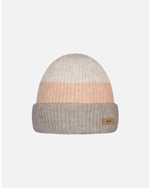 Super soft and stretchy Turnup height is 8 cm This product will pill gradually due to the characteristics of this yarn, it can be removed by hand or with a pilling stone Striped turnup beanie for women 74% Acrylic, 23% Polyamide, 3% Elastane Product Code: 6101- Colour: natural