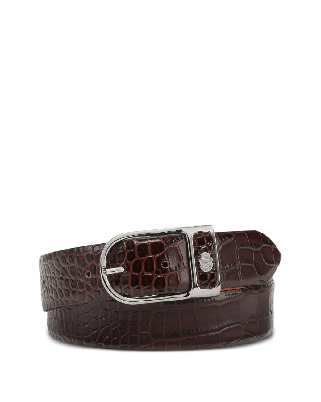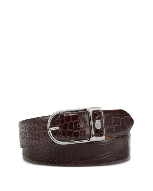 Dark brown crocodile-embossed leather silver-tone oval-shaped buckle logo detail Size: 85. Gender: Male. Material:Calf Leather. Colour: brown
