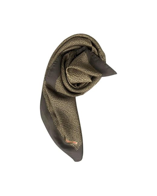 Borbonese Silk Scarf combines Italian craftsmanship with a refined micro-spotted print and contrasting bright grey piping for a polished finish. Key attributes: Grey | Silk | Versatile styling options | Packable and lightweight | Micro spotted print | Contrast bright grey piping | Framed Borbonese logo | Square shape | Dimensions & fit: 90 cm x 90 cm | Composition & care: 100% Silk Colour: green