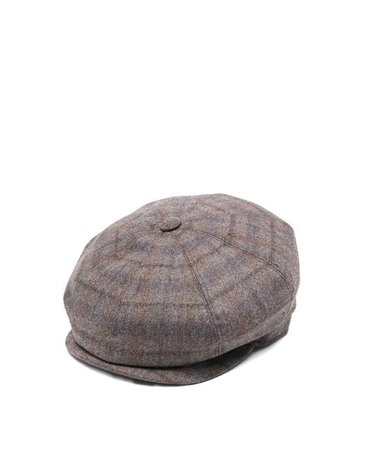 Drake Tweed Herringbone Italian Virgin Wool Cap For - Brown