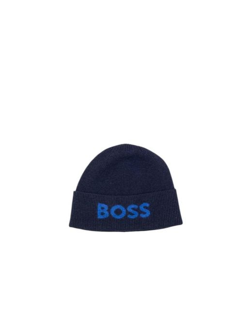 The Boss Elios_Hat 10274291 01 50548777 men's beanie is an essential accessory for the winter season. Crafted from a premium blend of recycled polyamide, viscose, recycled wool, and virgin wool, this hat ensures comfort, warmth, and an eco-friendly approach. The knitted design features a classic turn-up cuff and the iconic BOSS logo embroidered prominently on the front, adding a modern and distinctive touch. Ideal for completing casual or sporty outfits, it provides reliable protection against the cold and a snug fit for any outdoor occasion. Season: FW25. Colour: blue