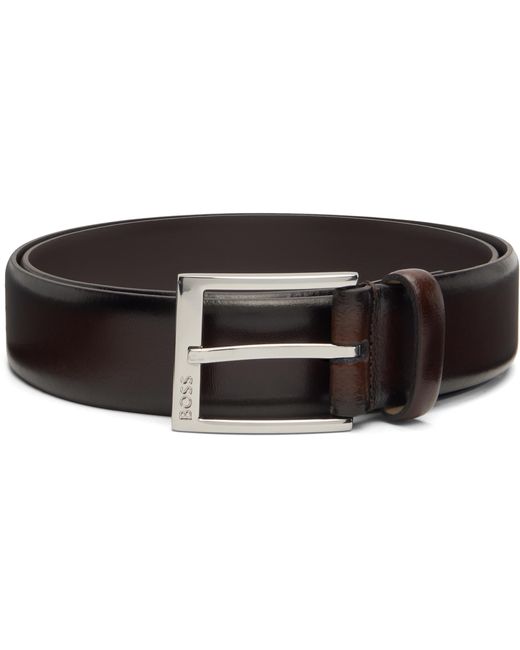 Hugo Geek Smooth-Leather Belt With Brushed- Buckle - Black