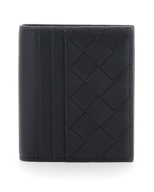 Men's Black Folded Card Holder With Intrecciato Motif And Embossed Logo Lettering On The Inside