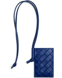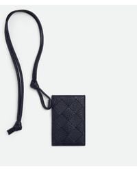 Go to Bottega VenetaIntrecciato embossed calf leather badge holder. Single card slot. Leather strap. Lining: Calf leather. Color: Cypress. • Material: Calfskin. Colour: green