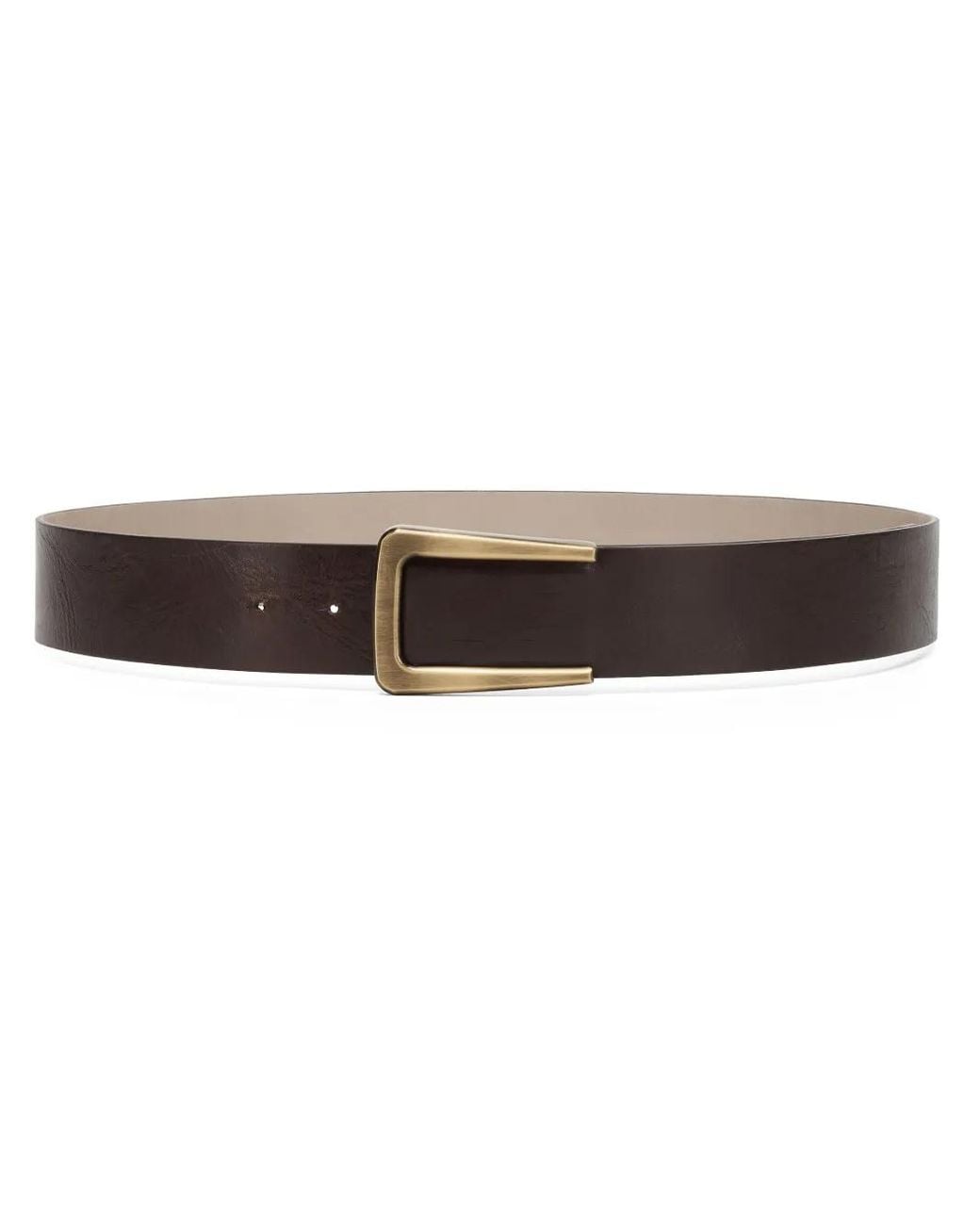 Coffee brown leather engraved logo buckle fastening punched holes adjustable fit gold-tone hardware Size: S. Gender: Female. Material:Leather.
