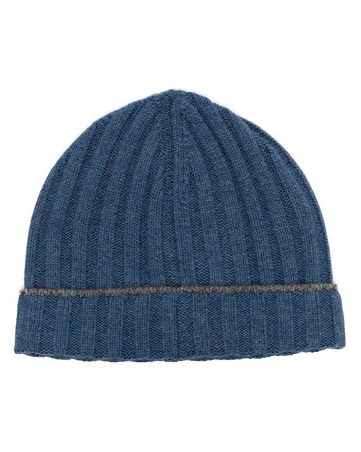 Ribbed-Knit Cashmere Beanie Hat - Red