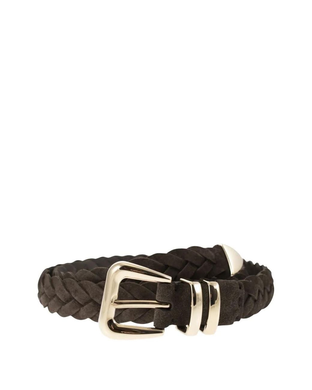 Dark brown braided texture suede like appearance metal buckle metal loops metal tip Size: 85. Gender: Male. Material:CALFSKIN/Brass. Colour: brown