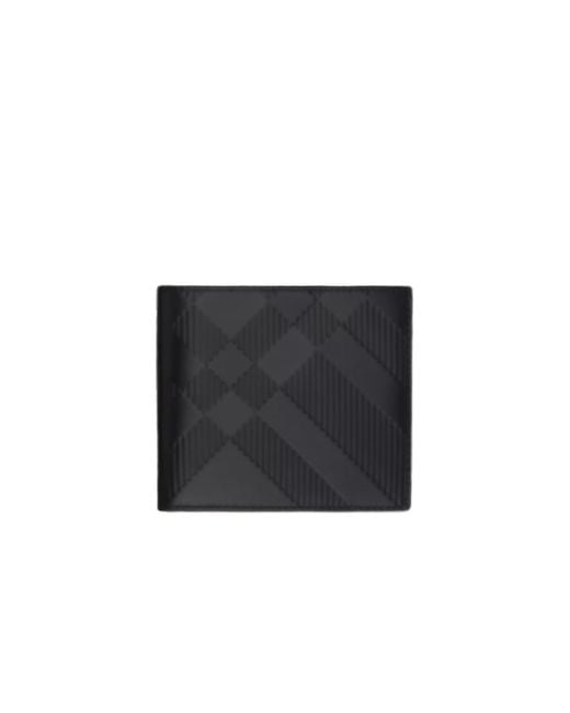 Men's Black Check Embossed Bi-Fold Wallet