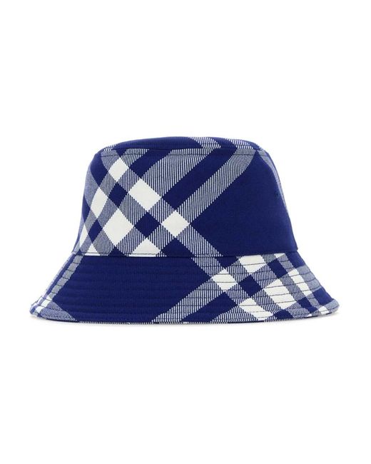 Burberry's Emroidered Polyester Blend Bucket Hat showcases the brand's signature check embroidery across the surface, offering a refined yet casual bucket hat for everyday wear. Key attributes: Blue | Checked | Polyester blend | Ventilation holes | Lined | Pull-on style | Check embroidery | Dropped narrow brim | Flat crown | Tonal stitching | Composition & care: Exterior: 67% Polyester, 33% Wool | Lining: 100% Cotton