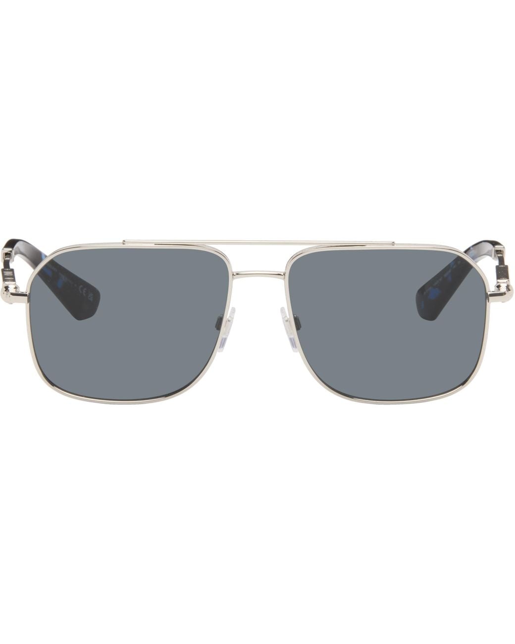 Square aviator-style metal-frame sunglasses. · Grey lenses · Adjustable rubber nose pads · Double bridge · Logo etched at temple · Tortoiseshell acetate temple tips · Includes pouch · Size: 59.16 145 Supplier color: Silver Colour: black