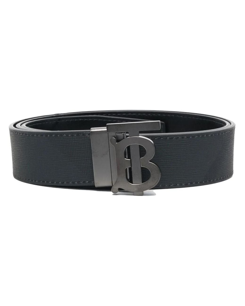 Black calf leather grained finish signature check pattern on the reverse signature TB monogram plaque silver-tone buckle fastening adjustable fit Size: 80. Gender: Male. Material:Polyurethane/Cotton/Calf Leather. Colour: black