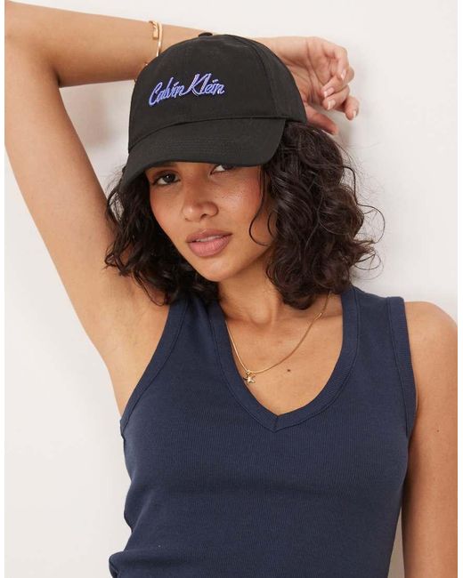 Accessories by Calvin Klein Jeans Panelled crown Eyelets for ventilation Logo embroidery Curved peak Adjustable buckle strap. Cotton. Colour: blue