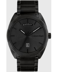 Go to Calvin KleinMovement driven. This automatic watch has a beautiful exhibition case back with exposed battery-free movement further enhanced by its skeleton dial. Available on a link bracelet.<br><br>• 40mm ionic black plated steel case<br>• 3-hand