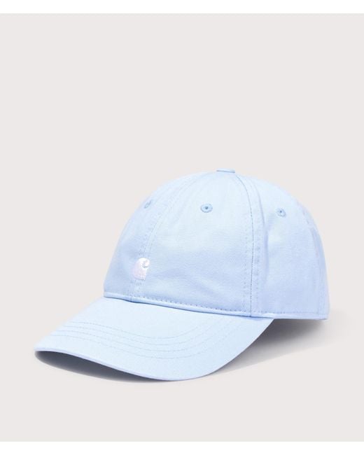 The perfect accessory to complete your summertime styling, introducing the Madison Logo Cap in Air Sky by Carhartt WIP. This cap features an unstructured six-panel design and is crafted from durable 100% cotton canvas for a breathable feel and an adjustable fit. Finished with a Carhartt WIP 'C' embroidered on the front for a bold, standout look. One Size Head circumference: 57 - 62 cm / 22.4 - 24.4 inch Garment washed Unstructured Unlined Six panel Firm, curved peak Embroidered ventilation eyelets Adjustable strap with personalised metal buckle Brand logo embroidery on front Department: Clothing, Mens, Hats & Caps, Carhartt WIP, One Size, 2QBXX Air Sky/White Colour: blue