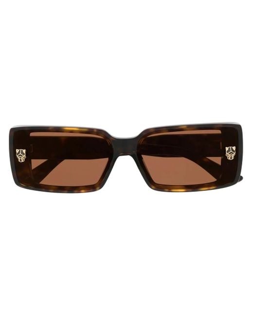 Brown tinted lenses tortoiseshell effect logo patches to the front rectangle frame straight arms curved tips All glasses from FARFETCH are sold as non-prescription frames. Size: 64. Gender: Female. Material:Acetate. Colour: brown