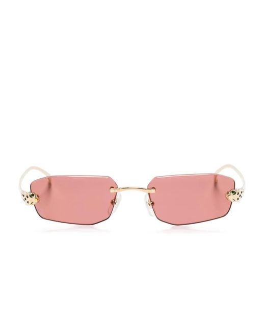 Gold-tone metal rectangle frame rimless lenses UV-protective red tinted lenses nose pads signature Panther-head detailing to the side straight arms with curved tips These glasses come with a protective case. Size: 56. Gender: Unisex. Material:Metal. Colour: pink