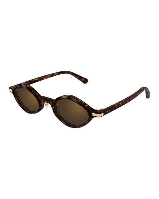 Cartier Godron Sunglasses combine a petite geometric silhouette with Cartier’s signature Godron detailing for a refined everyday look. They pair polished metal accents with acetate frames and include the original case, cleaning cloth, certificate of authenticity and warranty. Key attributes: Brown | Havana | Acetate | Bio nylon lenses | UV protection | Includes original case | Cleaning cloth included | Certificate of authenticity included | Warranty/guarantee included | Geometric polygonal shape | Godron motif on hinge | Gold-finish detailing | Full-rim frame | Dimensions & fit: Eye 48mm | Bridge 21mm | Temple 145mm | Small fit | Composition & care: Acetate frame | Bio nylon lenses | Metal detailing