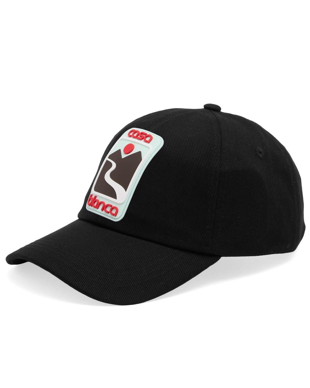 Whether you're going incognito or simply elevating your look, this cap from Casablanca is the ideal finishing touch. Crafted from cotton with a structured shape and adjustable back buckle for a custom fit, it stands out with a bold rubber patch front and centre. 100% Cotton, 6 Panel Structure, Slightly Curved Peak, Adjustable Back Buckle, Rubber Branding, Product Code: APF25-HAT-002-06, Casablanca, Shop All Women's Caps, - Casablanca Women's Sunset Valley Patch Cap Black Colour: black