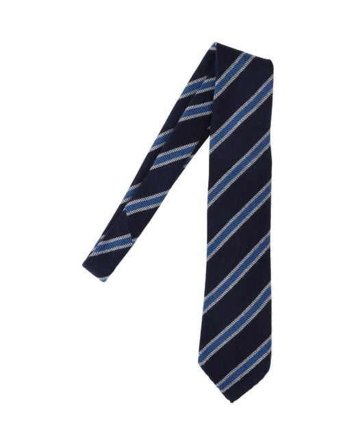 Cesare Attolini striped tie in blue cashmere in navy shades, blue and beige striped pattern, adjustable. Composition: 100% Cashmere Colour: blue