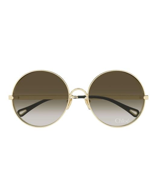 The Chloé CH0321S 006 Sunglasses express refined feminine elegance thanks to the shiny gold metal frame that adds brightness and lightness to the design. The brown gradient lenses with thick rims add a strong character and a retro touch while maintaining a contemporary and harmonious appearance. The round shape enhances the features and offers a sophisticated look, ideal for those seeking a distinctive and refined style. Perfect for everyday use, they ensure comfort, UV protection, and an iconic aesthetic typical of the Chloé brand. Colour: brown