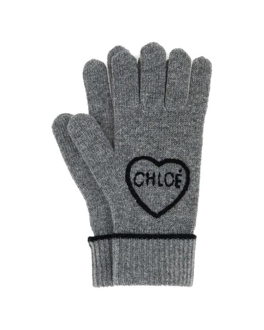 Embroidered Wool And Cashmere-Blend Gloves - Grey