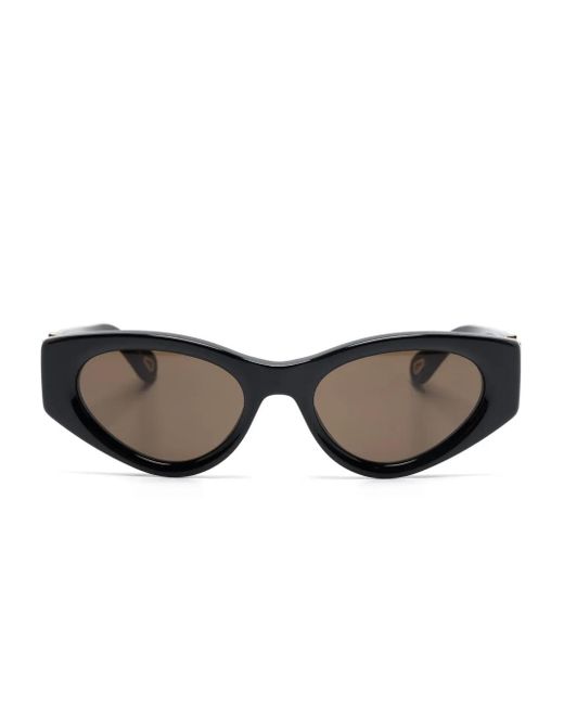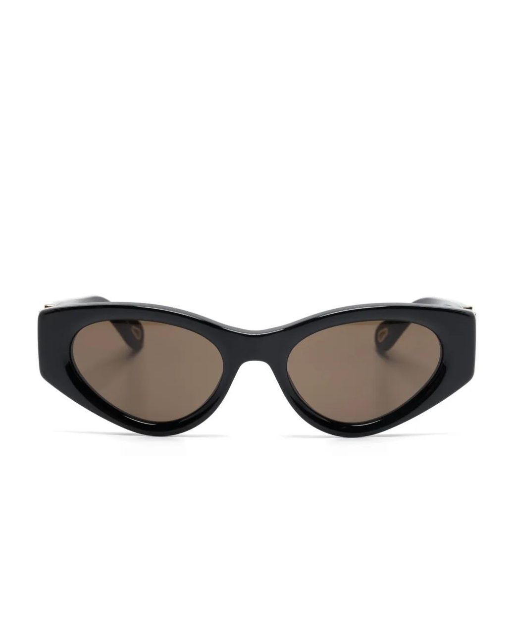 Black acetate cat-eye frame tinted lenses curved arms These glasses come with a protective case. Size: 40. Gender: Female. Material:Acetate/Metal. Colour: black