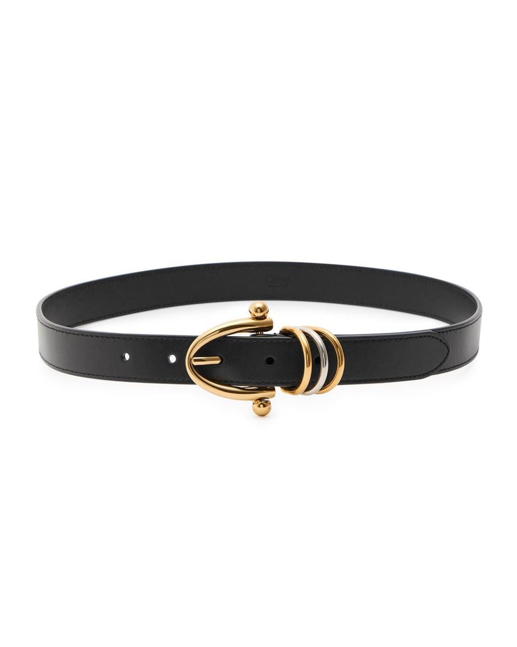 Info & Care Chloé leather belt Two-tone ring embellishments, debossed designer stamp Adjustable buckle fastening Presented in a designer-stamped box Size & Fit Width: 2.5cm Colour: black