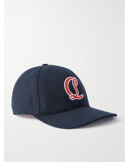 Men's Blue Mooncrest Ivy Logo-Embroidered Leather-Trimmed Cotton-Canvas Cap