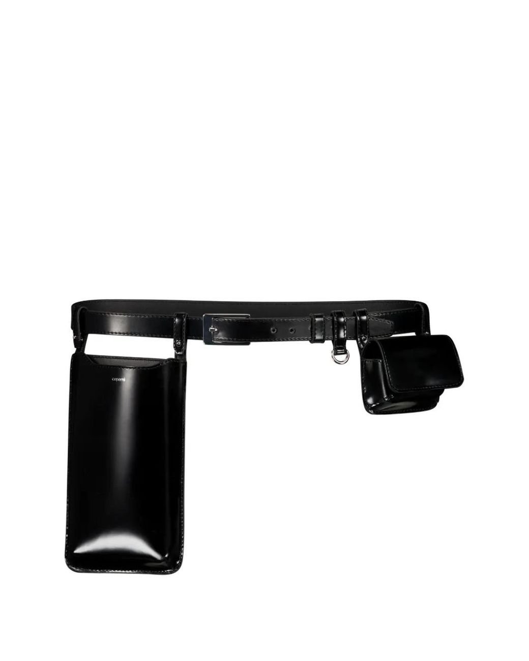 Black polished finish detachable case elongated pocket modular construction adjustable components Size: One Size. Gender: Female. Material:Calf Leather. Colour: black
