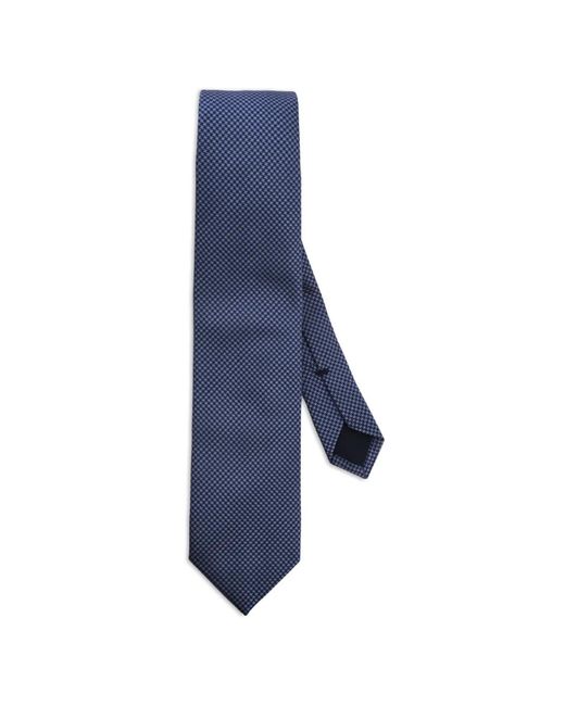 Silk Tie With Rectangular Geometric Pattern - Blue