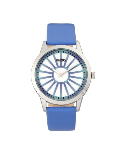Polished Alloy Case; Japanese Quartz Movement; Non-Glare Scratch-Resistant Mineral Crystal; Logo-Engraved Stainless Steel Caseback; Leatherette Strap; Logo-Engraved Stainless Steel Clasp; 41mm Case Diameter; 3ATM Water Resistance; Colour: blue