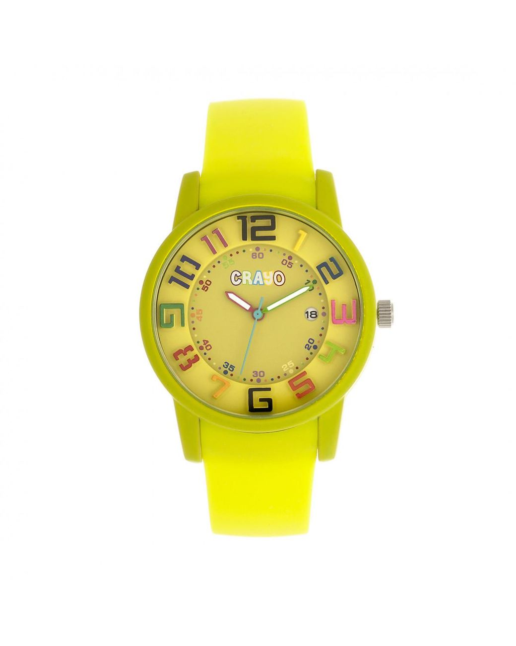 Rubber-Coated Metal Case; Quality Japanese Quartz Movement; Non-Glare Scratch-Resistant Mineral Crystal; 3D Raised Numbers; Logo-Engraved Stainless Steel Caseback; Contour Silicone Strap; Logo-Engraved Stainless Steel Clasp; Luminous Hands; Date Display; 41mm Diameter; 3 ATM Water Resistance; Colour: yellow