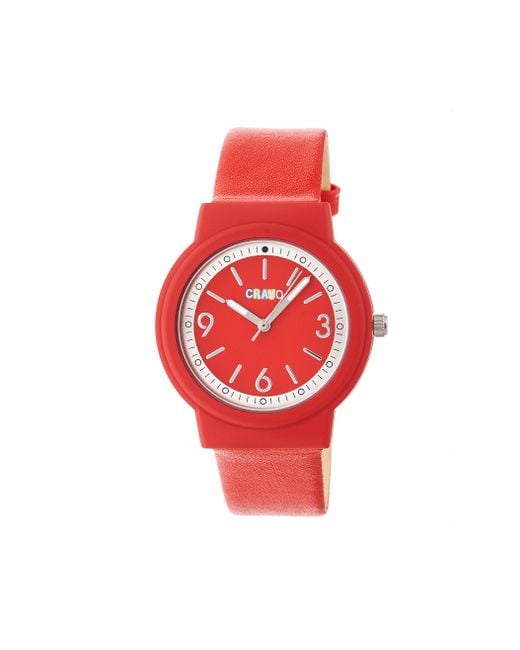 Rubber-Coated Metal Case; Precision Japanese Quartz Movement; Non-Glare Scratch-Resistant Mineral Crystal; Logo-Engraved Stainless Steel Caseback; Leatherette Strap; Logo-Engraved Stainless Steel Clasp; 38mm Case Diameter; 3ATM Water Resistance; Colour: red