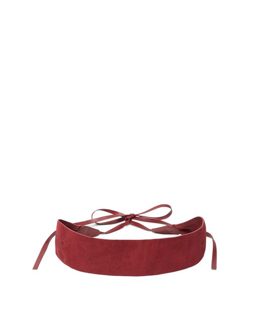 Women's Red Fajin Tie Back Boho Leather Belt Waist Cinching For Dresses Style 21warl02