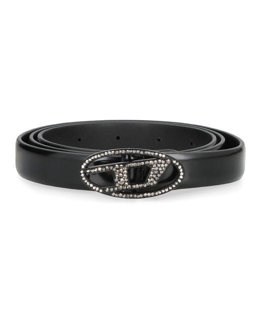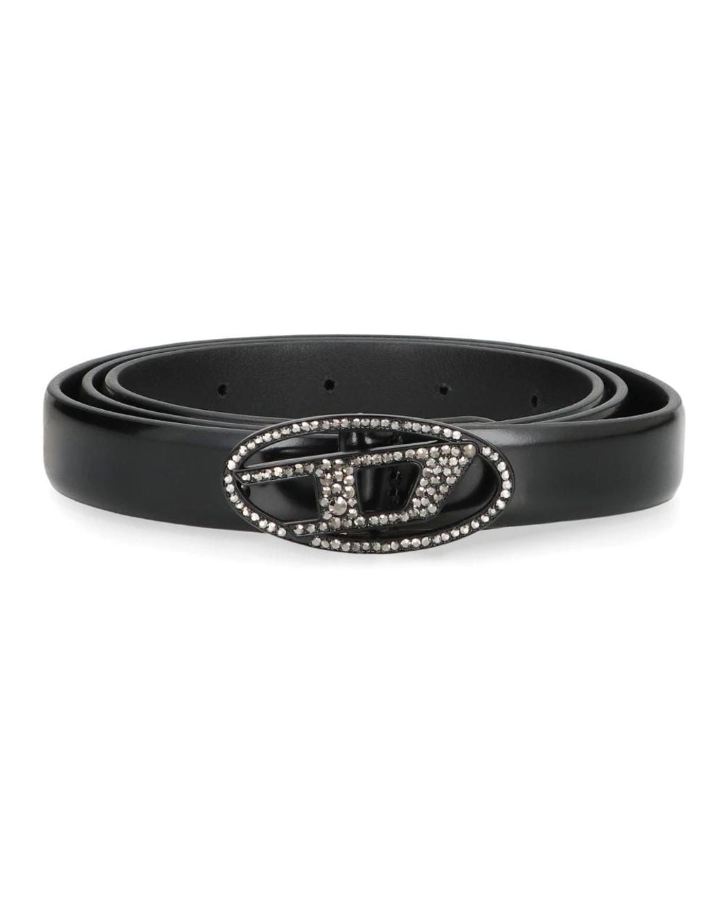 Diesel B-1dr Strass 20 is a slim leather belt by Diesel featuring a strass crystal buckle for a subtle, refined accent to everyday looks. Key attributes: Black | Cow hide | Buckle fastening | Strass (crystal) buckle | Dimensions & fit: Belt height: 2 cm | Buckle size: 5,5x 2,5 cm | Slim profile | Composition & care: 100% Cow hide Colour: black