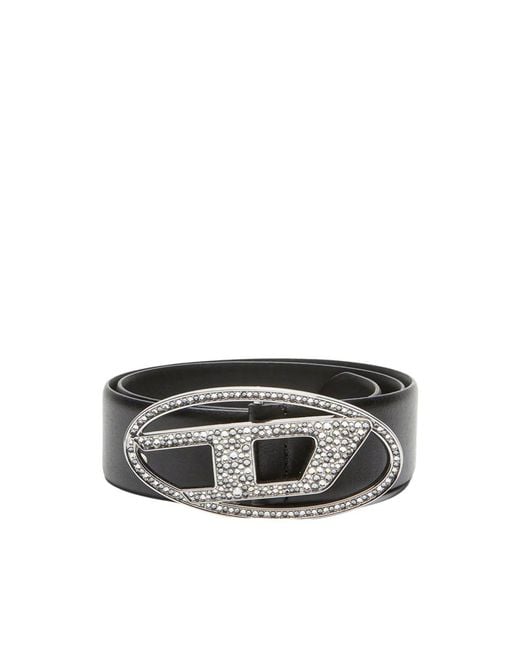 The Diesel B-1Dr Strass Belt is a slim leather belt featuring a crystal-embellished Oval D buckle. Designed for polished everyday wear, it adds refined shine to jeans or tailored looks. Key attributes: Black | Cow leather | Adjustable buckle with punched holes | Buckle closure | Crystal-embellished Oval D buckle | Smooth leather strap | Slim profile | Dimensions & fit: Width: 4 cm / 1.5 inches | Adjustable fit with punched holes | Available in multiple sizes (70–100 cm) | Composition & care: 100% Cow Leather Colour: black