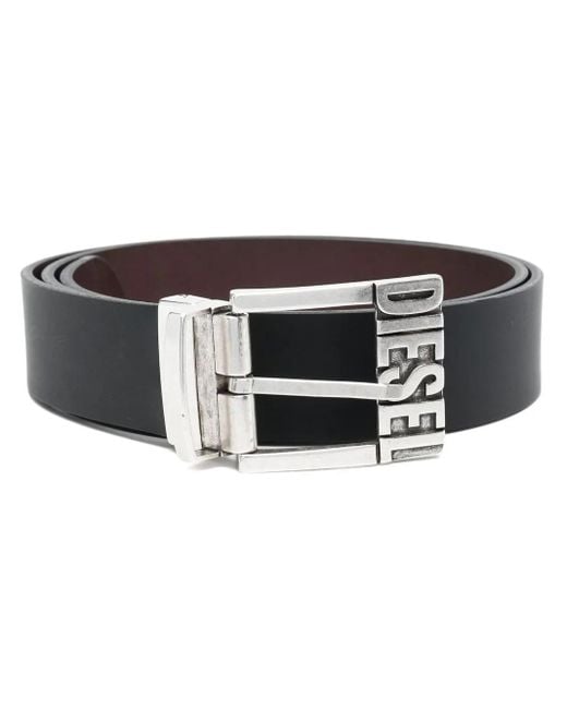 Logo-buckle leather belt from DIESEL featuring black, calf leather, logo-buckle detail, punched holes and adjustable fit. Size: 75. Gender: Male. Material:Calf Leather. Colour: black